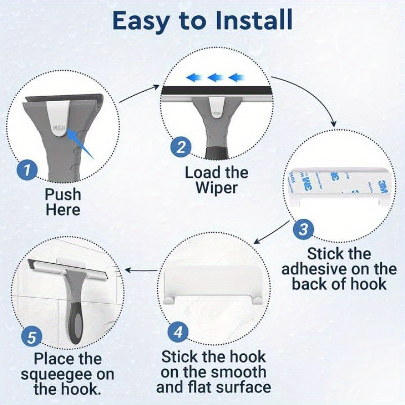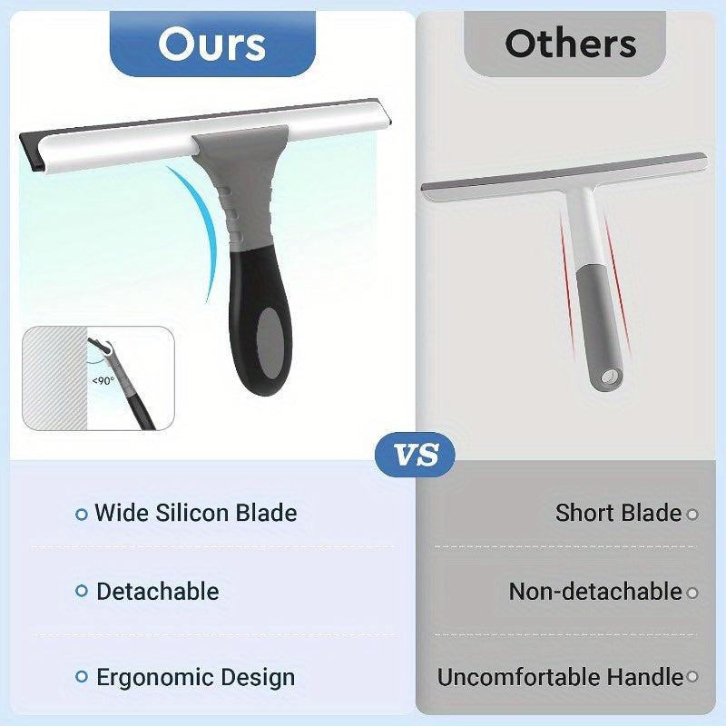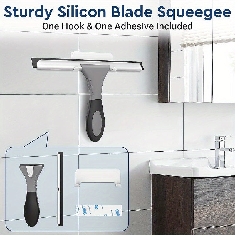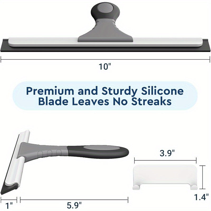 AllPurpose Silicone Shower Squeegee for Glass Window Door Mirror Car Windshield Tile Wall Portable Cleaner Tools Includes One Hook One Adhesive 10 Inches Gray